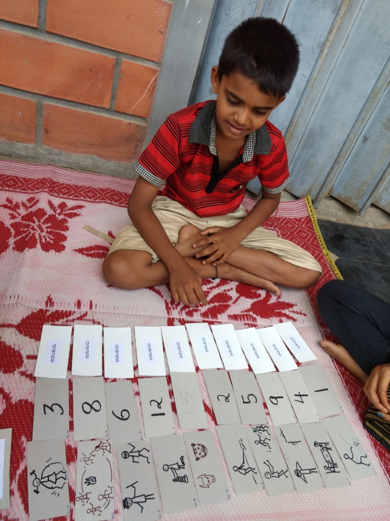 Chili pili cheela encourages self learning. The activity side of the card has icons which facilitates independent work by the user. The icons act as an indicator and suggest the kind of exercise required to attempt the activity.